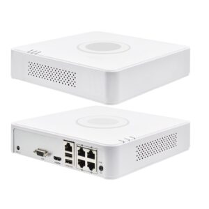 Hikvision 4-Channel Q1 Series NVR. 4 Independent PoE network interfaces; H.265+/H.265 compression; Full channel recording at up to 4-MP resolution HD Video Output; HDMI/VGA output at 1080p resolution playback; 1 SATA HDD / 6TB; Supports line crossing and intrusion detection